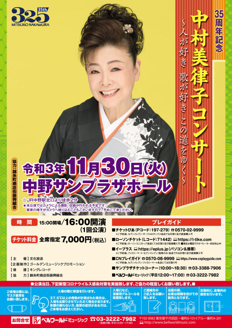 先日お知らせした、中村美律子さんの35周年記念コンサートのチラシが届きましたので、掲載されていただきます。