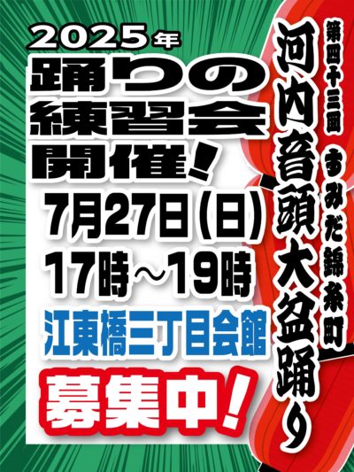 また、両日、本番の前に「前唄」として、東京で河内音頭や江州音頭の活動をされている皆さんによる演奏も予定しております。